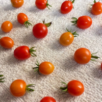 Also note, some of my cherry tomatoes, finally – and I mean finally because these suckers have been on the vine for like three weeks, just staring at me with their little green faces – are ready. That means cherry tomatoes for at least three meals. Yay!